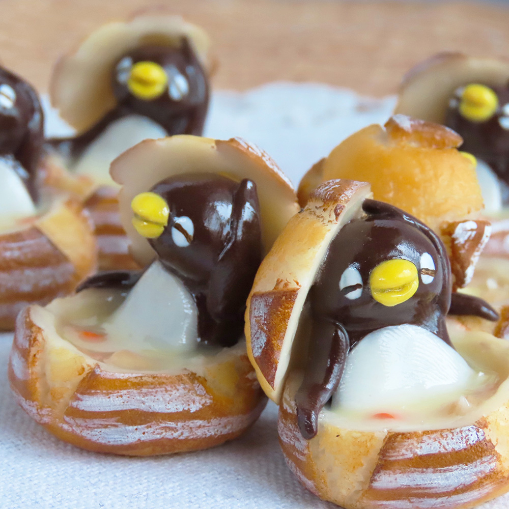 ペンギンとパンで満たされる毎日にしあわせをテーマに作品作りをしております。 樹脂粘土やレジンを使い、ミニチュアフードやアクセサリー、フィギュアを主に作成しております。