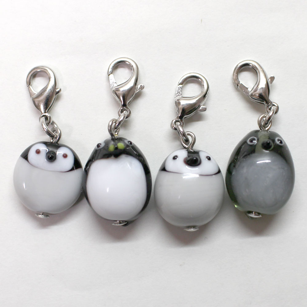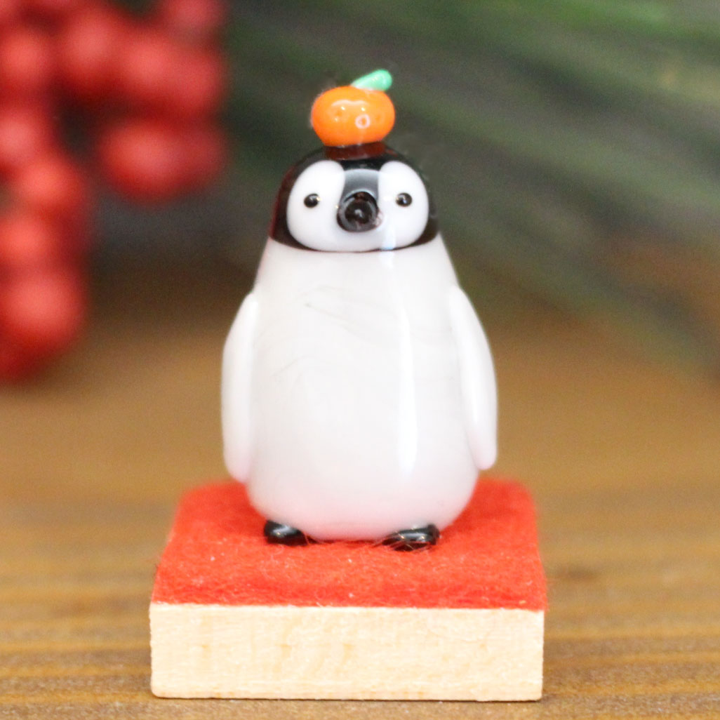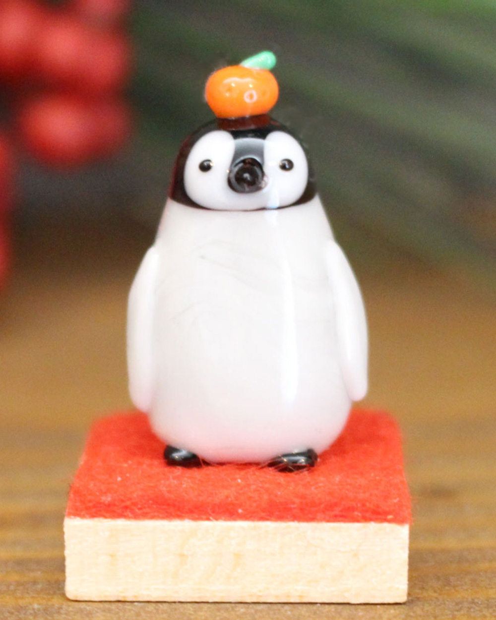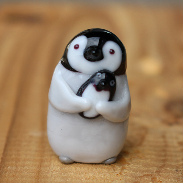 バーナーワークという技法でガラス棒を溶かし作品をつくっています。ガラスのつるっとした質感と丸みや重みがペンギンを表現するのにぴったりだと思っています。