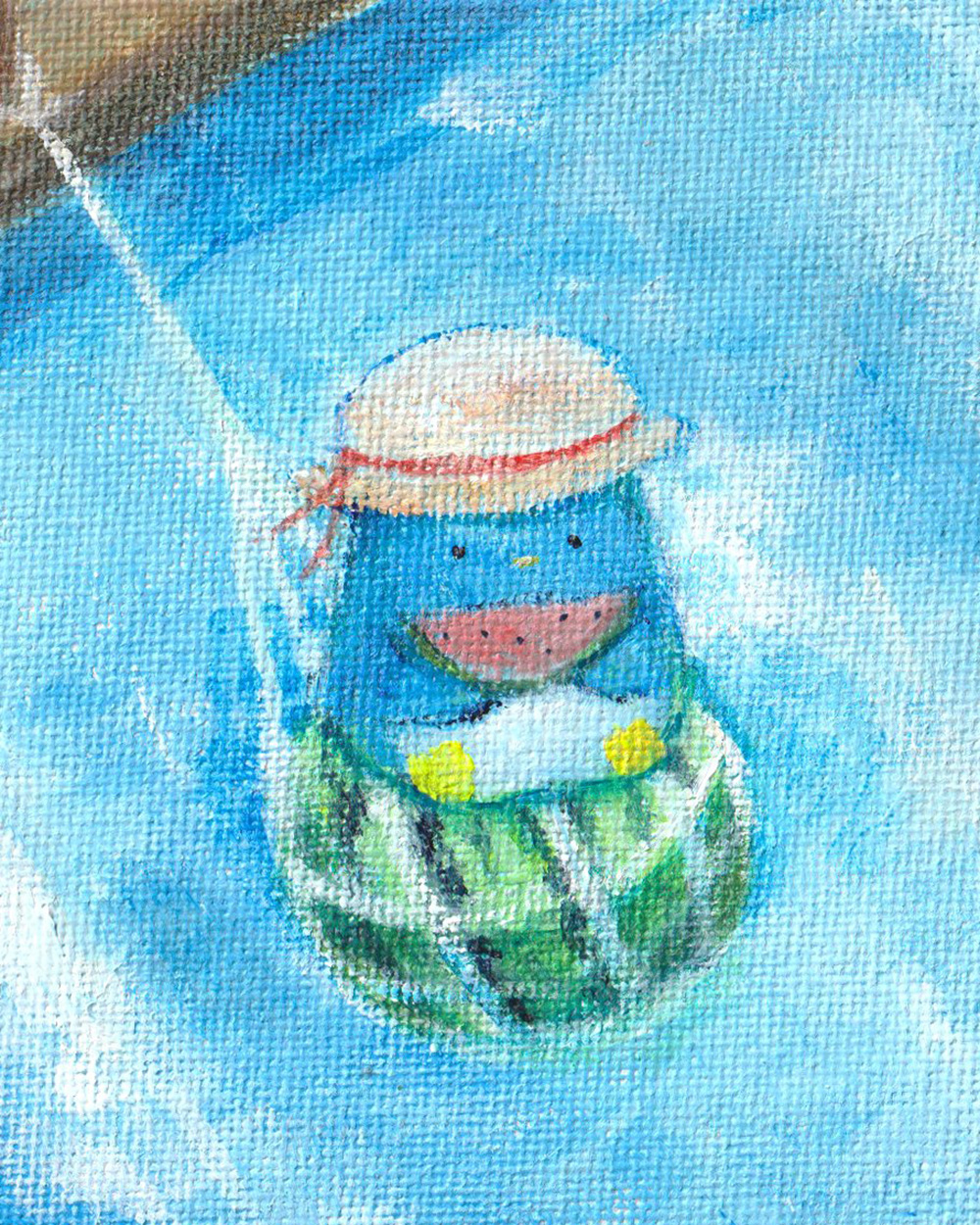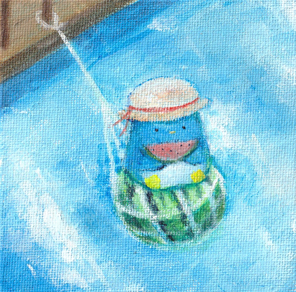 アクリル絵の具を使用し、アナログでほっとする優しいイラストを描いています。 描くペンギンは生活を楽しんでいる、子供っぽくて可愛い丸いペンギンです。
