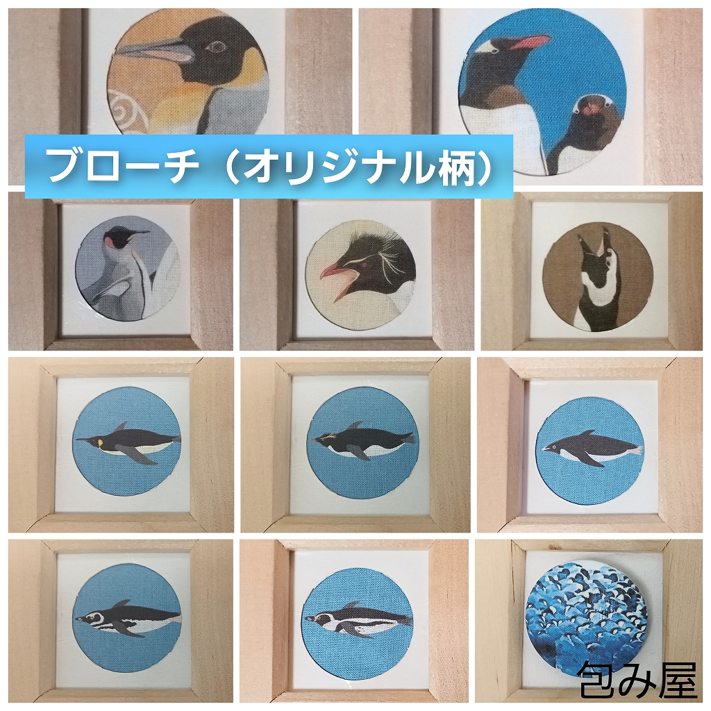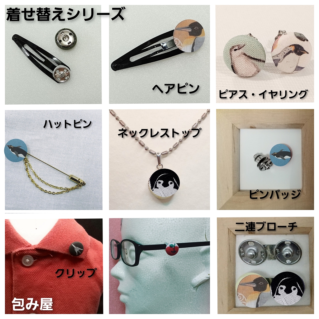 くるみボタン、くるみボタンを使ったハンドメイドアクセサリー屋です。 オリジナルのペンギン柄のほか、既製布のペンギン柄も扱ってます。 アクセサリーの種類はブローチ、髪ゴム、ピアス(イヤリング)、ネクタイピンなど約40種。丈夫で使い勝手が良い物を目指して作っています。