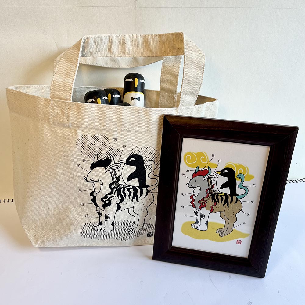 作品集『ペンギン美術館』(青心社)からの名画グッズをはじめ、シルクスクリーンのポストカードやトートバッグ、さらにオリジナル油絵など、持つだけで心が弾む作品を販売予定です。