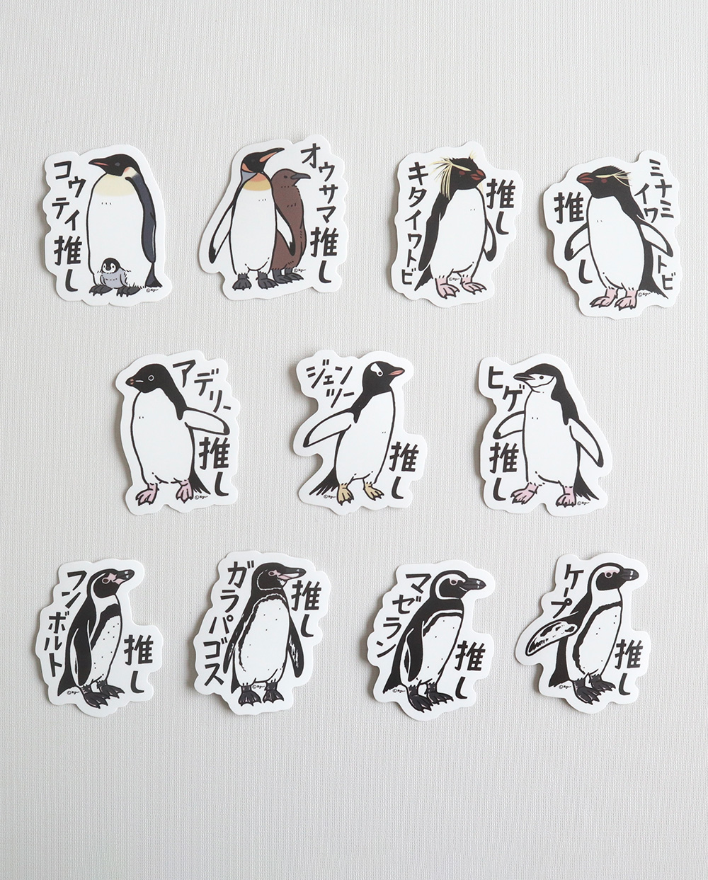 ペンギン好きな自分が欲しいと思うグッズを作っています。普段の生活で使いやすい、キーホルダーや文具などが多めです。市販にはあまりないマイナーなペンギンのグッズや、全種類集合グッズも制作しています。