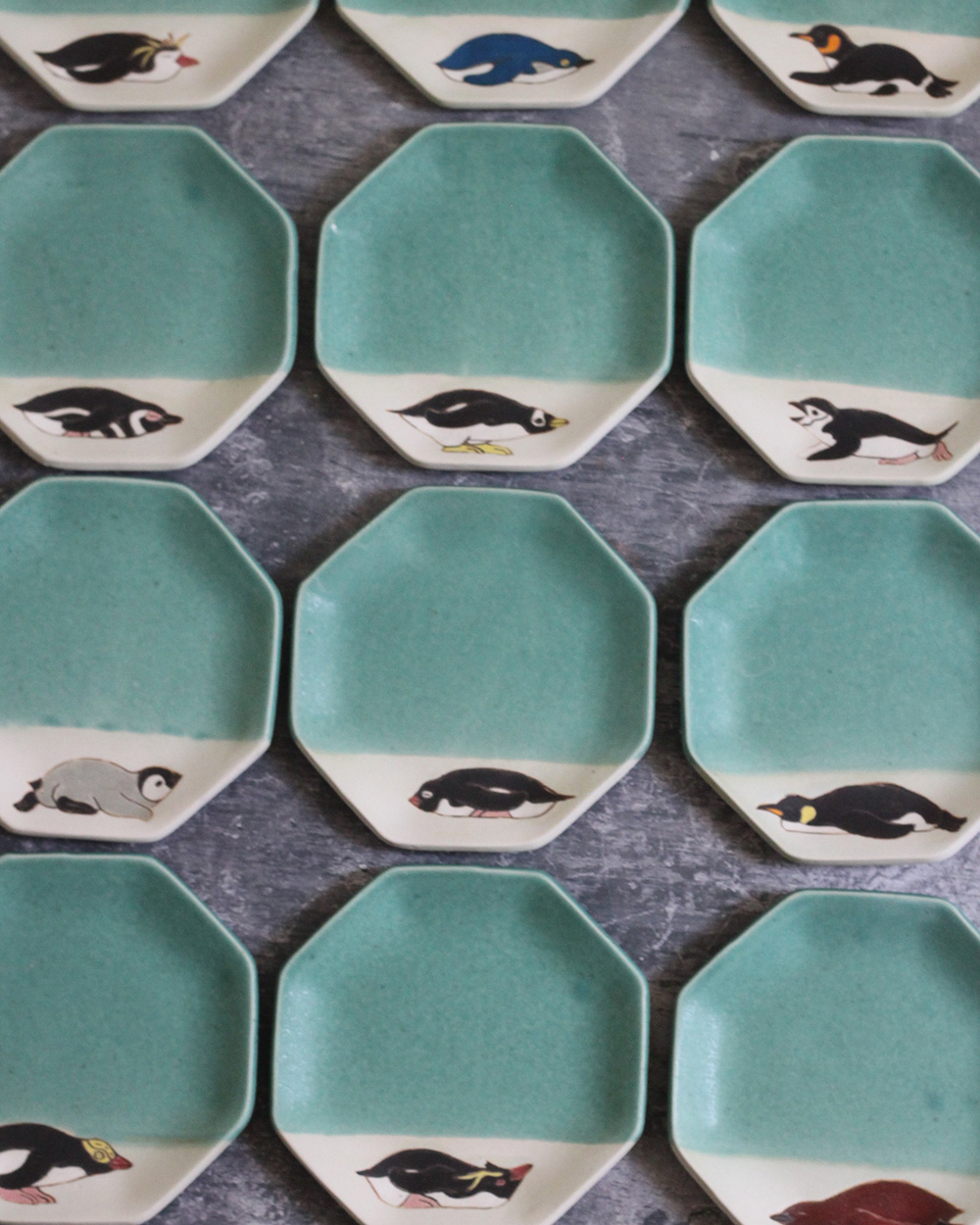 ペンギンを中心に鳥や動物をモチーフにしたうつわやオブジェ、アクセサリーなどを製作しています。手にした方が心和むような作品作りを目指しています。