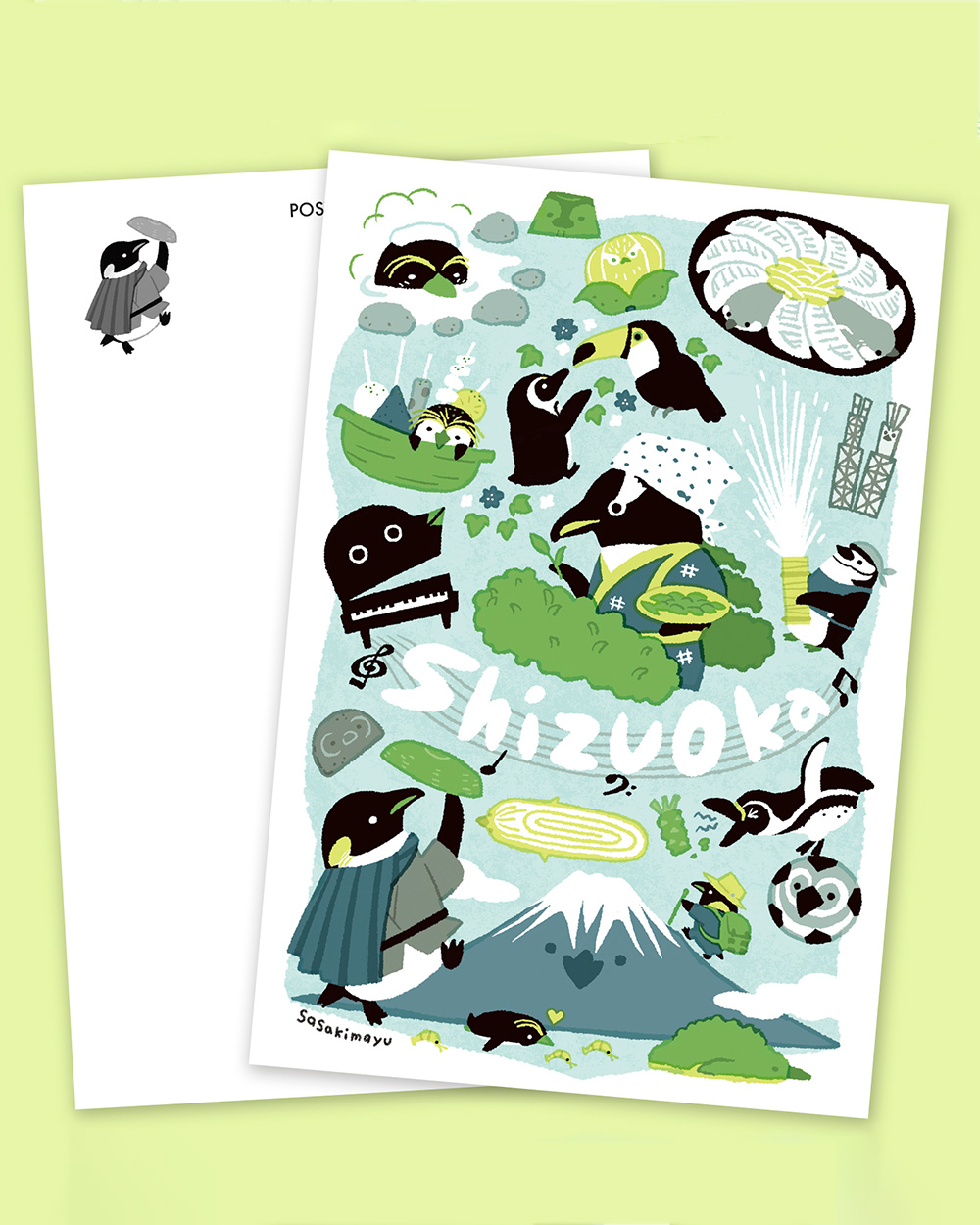 ご当地・民族衣装・遊園地などいろいろなテーマで 18種類のペンギンイラストを描いています。 ポストカードやシール等の文具や アクリルグッズなどの雑貨を中心にアイテムを作っています。